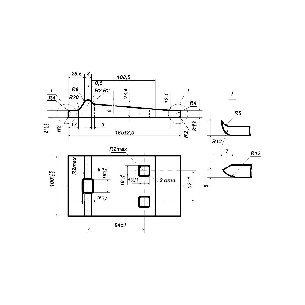 | Размеры отверстий, мм | 2 шт: 16 х 16; 1 шт: 16 х 18 |